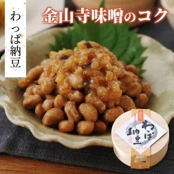 納豆(大豆(宮城県産ミヤギシロメ大豆)、納豆菌) 金山寺みそたれ(小麦、水飴、食塩、なす、大豆(遺伝子組み換えでない)、砂糖、香辛料)/酒精、調味料(アミノ酸)、(一部に小麦・大豆を含む)