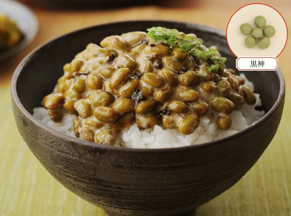 甘味、芳醇、色の美しさが特徴の国産「黒神」を使用した小粒納豆です。