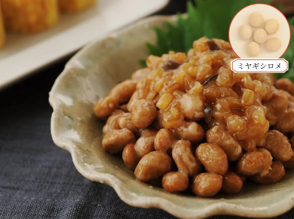 宮城産ミヤギシロメの極上大粒大豆が金山寺味噌のたれと出会い、絶妙の発酵食品に仕上がりました。