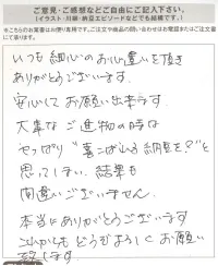 ご注文後のご変更は分かり次第お早目にご連絡をお願い致します。